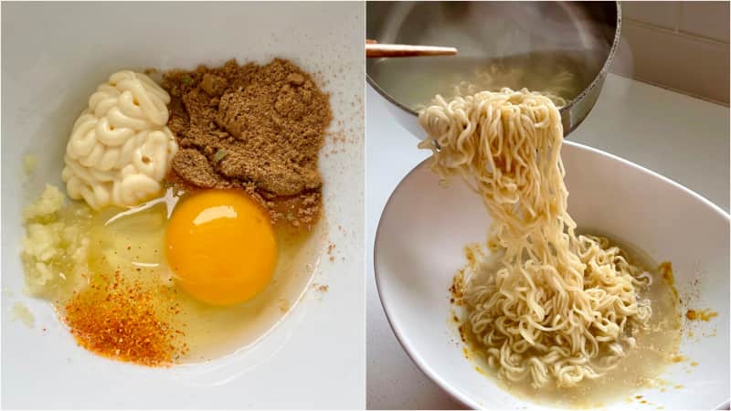 We live in South Korea I invite you over for Ramyeon late at night. Crack the egg into the bowl and add garlic and Kewpie. In a bowl whisk together 1 egg 1 tbsp kewpie mayo 1 clove minced garlic and the instant ramen spice packs.